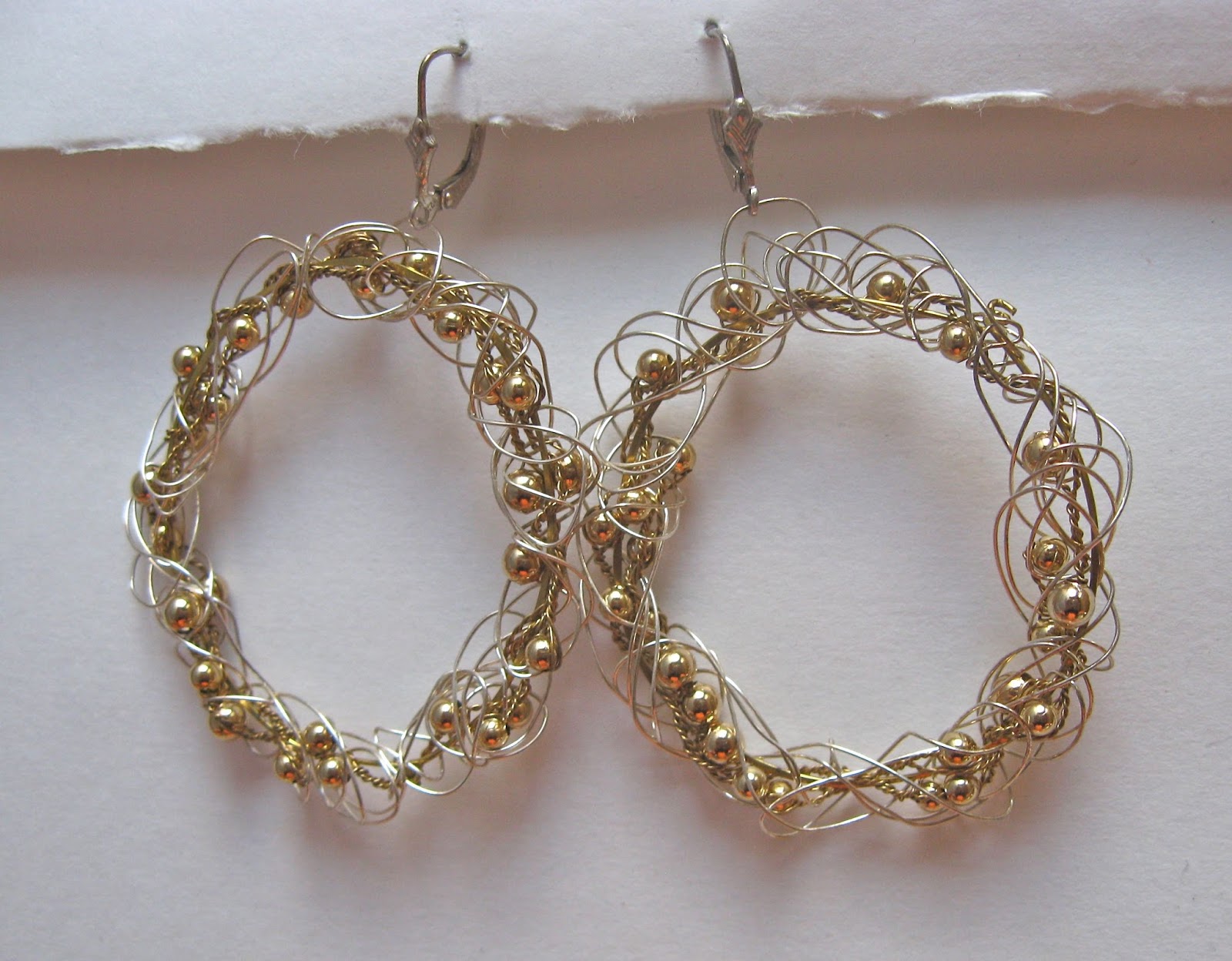 | WIRE OF DIFFERENT COLORS? CROCHET & THEN TWISTED.THE SMALL CIRCLE WITH OVAL MAKES AN EARRING ON IT'S OWN. 2-COLOR METALS WORKS WELL |